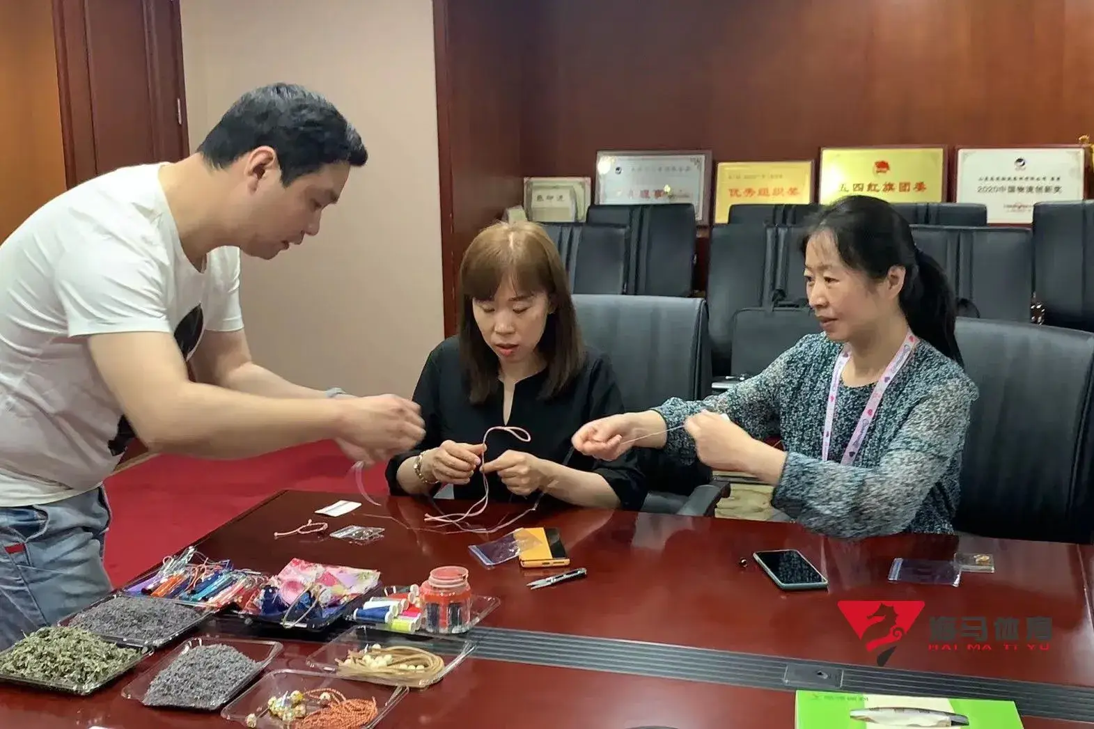 制作前,中欧体育的手工老师首先介绍了端午的习俗以及端午节制作香囊与五彩绳的来历,让大家在活动前了解端午的民俗文化,手工老师将精心准备的有着美好寓意的五色彩绳、色彩绚丽的香包袋以及清香的艾草薰衣草,送到职员手中,携手制作香包和五彩绳。